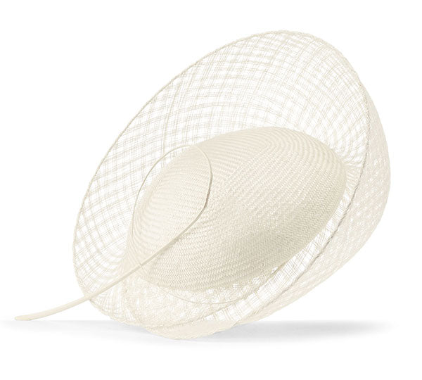 • Women's ivory parasisal and mesh sinamay percher hat finished with a hand-curled striped ostrich quill.