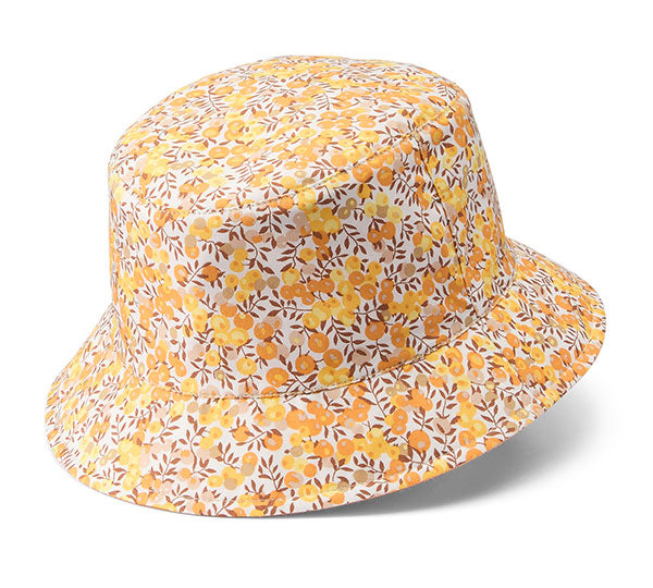 • Women's packable orange floral motif  reversible bucket hat